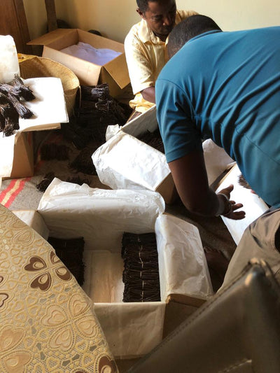 Here we have shared pictures of Vanilla Pods, ready for dispatch. We bundle them up to weigh and pack them in different batches. A digital weight scale is preferred for getting the exact count.